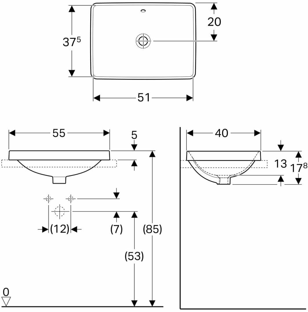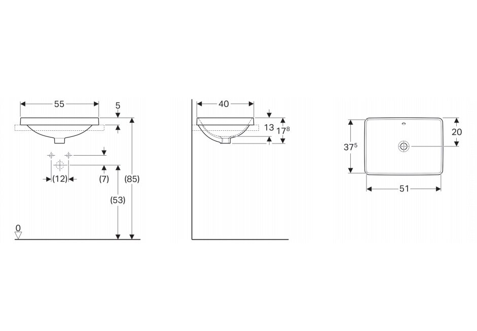 Geberit 500.736.01.2 VariForm Раковина встраиваемая под столешницу, 55х40 см, белая