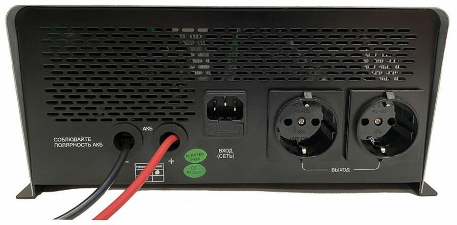| Плюсы: | Работает. В меню есть функции выбора номинала напряжения выхода:220 или 230 В. Можно отключить звуки нажатия кнопок. Схемы на экране очень информативные, детально описывают текущий режим работы ИБП. Собран неплохо, провода аккумуляторы толстые, примерно 6 мм, и двойные на каждый полюс, клемма под винт. |