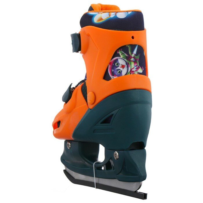 Коньки ледовые детские раздвижные «Космос» 223E, текстиль, пластик, размер 30-33, цвет оранжевый, серый