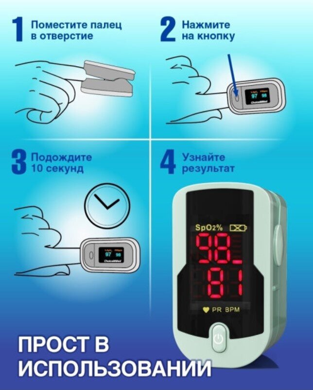 | Отзыв: | Если у вас корона, то ориентируйтесь на КТ или одышку. Этот прибор это бред собачий, никаких объективных данных он не показывает. |