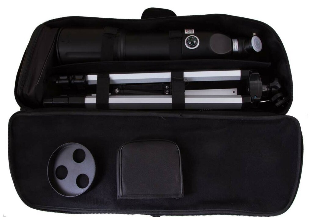 | Комплектация | телескоп, окуляры K9 мм (44x), K25 мм (16x); линза Барлоу 3x; диагональное зеркало; оптический искатель 5х20; тренога; сумка для переноски |