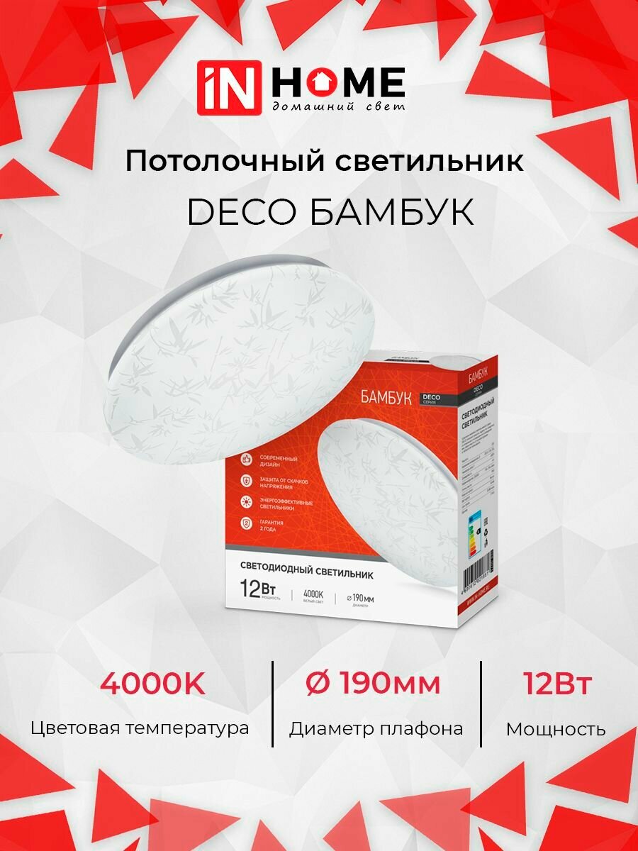 Светильник светодиодный DECO 12Вт 230В 4000К 780лм 190мм бамбук IN HOME 4690612021881 интересное: