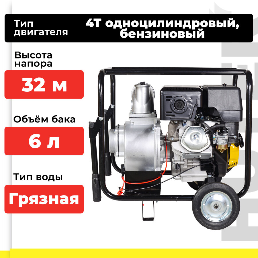 Мотопомпа HUTER MPD-100, центробежная, самовсасывающая, для грязной воды, 15 л. с, 3800 об/мин, 100/4 мм/дюйм,1800 л/мин