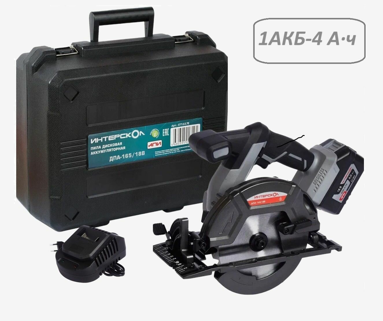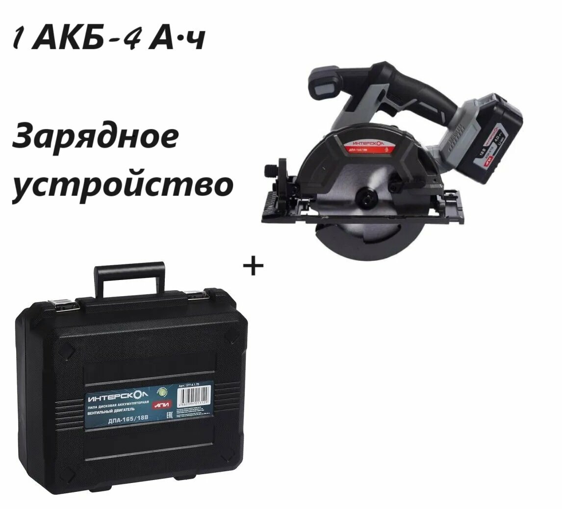 Пила циркулярная аккумуляторная Интерскол ДПА-165/18В (577.4.1.70), 18 В, 4 Ач Li-ion АПИ, ЗУ