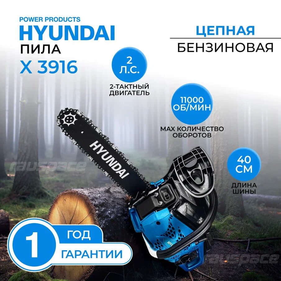 Бензопила цепная Hyundai Х 3916 (1.5 кВт, шина 40см, шаг цепи 0,375 дюйма, 57 звеньев) садовый ручной инструмент