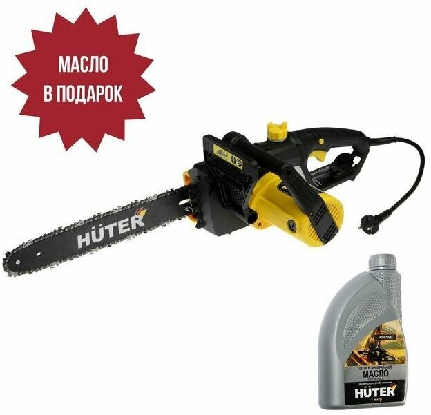 Пила цепная Huter ELS-1800P, электрическая, 1800 Вт, 14", шаг 3/8", 1.3 мм, 53 зв. + Масло