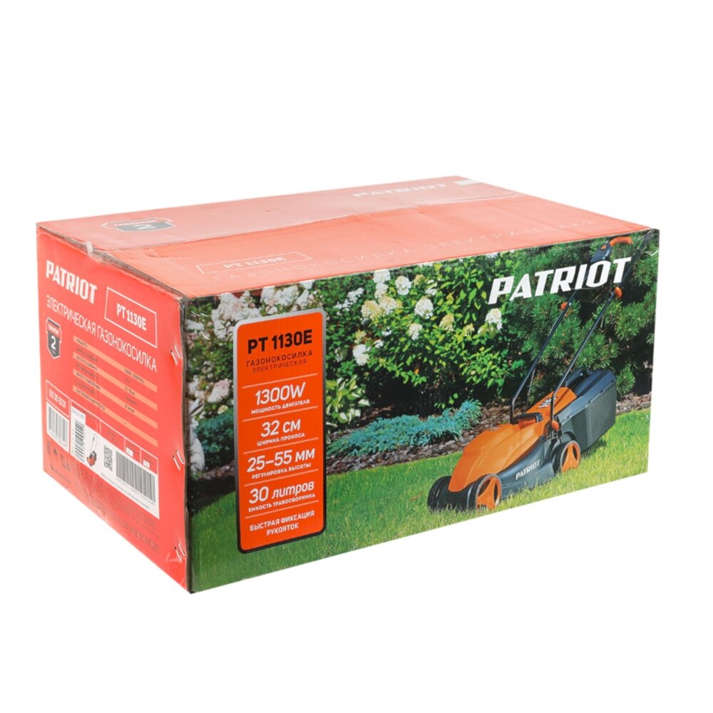 Газонокосилка электрическая PATRIOT PT 1130E, 1300 Вт, 32см, высота 3 позиц, пластик. травосбоник 30