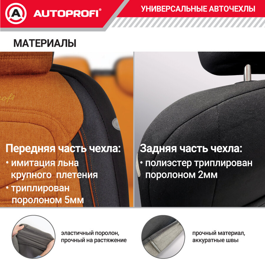 Купить чехлы универсальные autoprofi linen lin-1505 bk/orange лён чёрные/оранжевые
