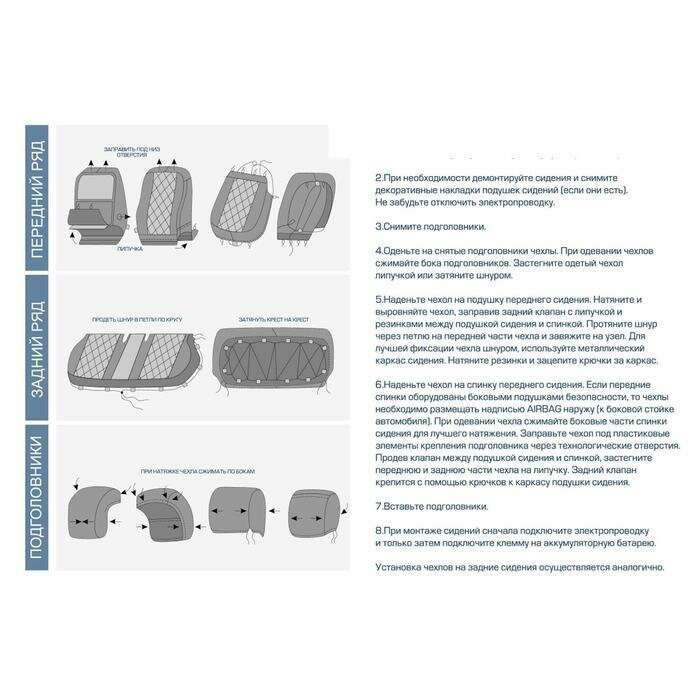| Дополнительная информация | имеют специальный шов в передних чехлах, который не мешает срабатыванию подушки безопасности |