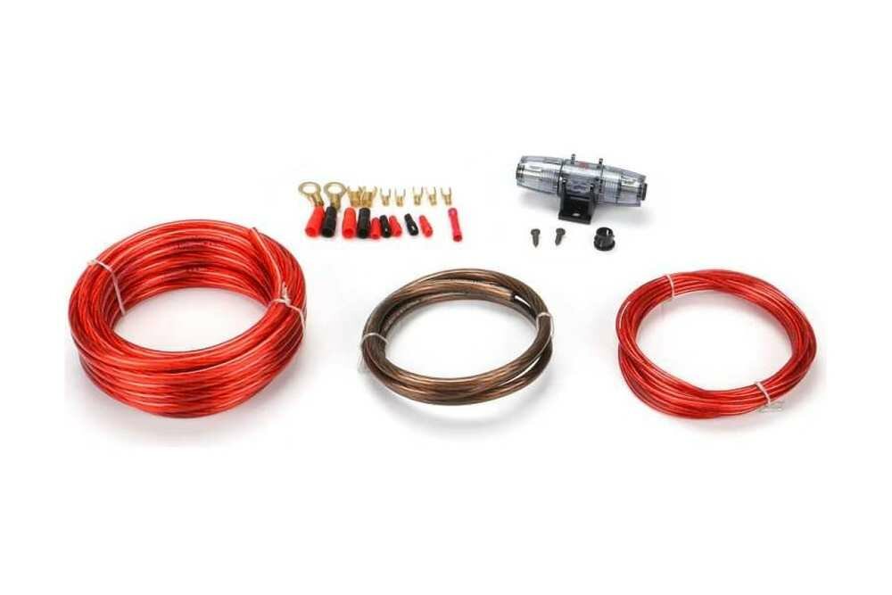 | Комплектация | силовой кабель КСнетМТ8 красный: 5 м сечением 8 GA (8,36 мм²); силовой кабель КСнетМТ8 черный: 1 м сечением 8 GA (8,36 мм²); 1 держатель с компрессионными зажимами с предохранителем типа MiniANL на 40А; управляющий кабель сечением 18GA (0,82 мм²): 5 м; 2 клеммы кольцевых для силового кабеля сечением 8 GA (8,36 мм²); 2 клеммы Uнетобразных для силового кабеля сечением 8 GA (8,36 мм²) |