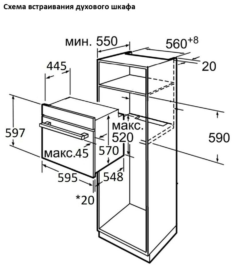 | Режимы нагрева | нижний нагрев, верхний нагрев, верхний нагрев + нижний нагрев, нижний нагрев + конвекция, гриль + конвекция, большой гриль, конвекция |
