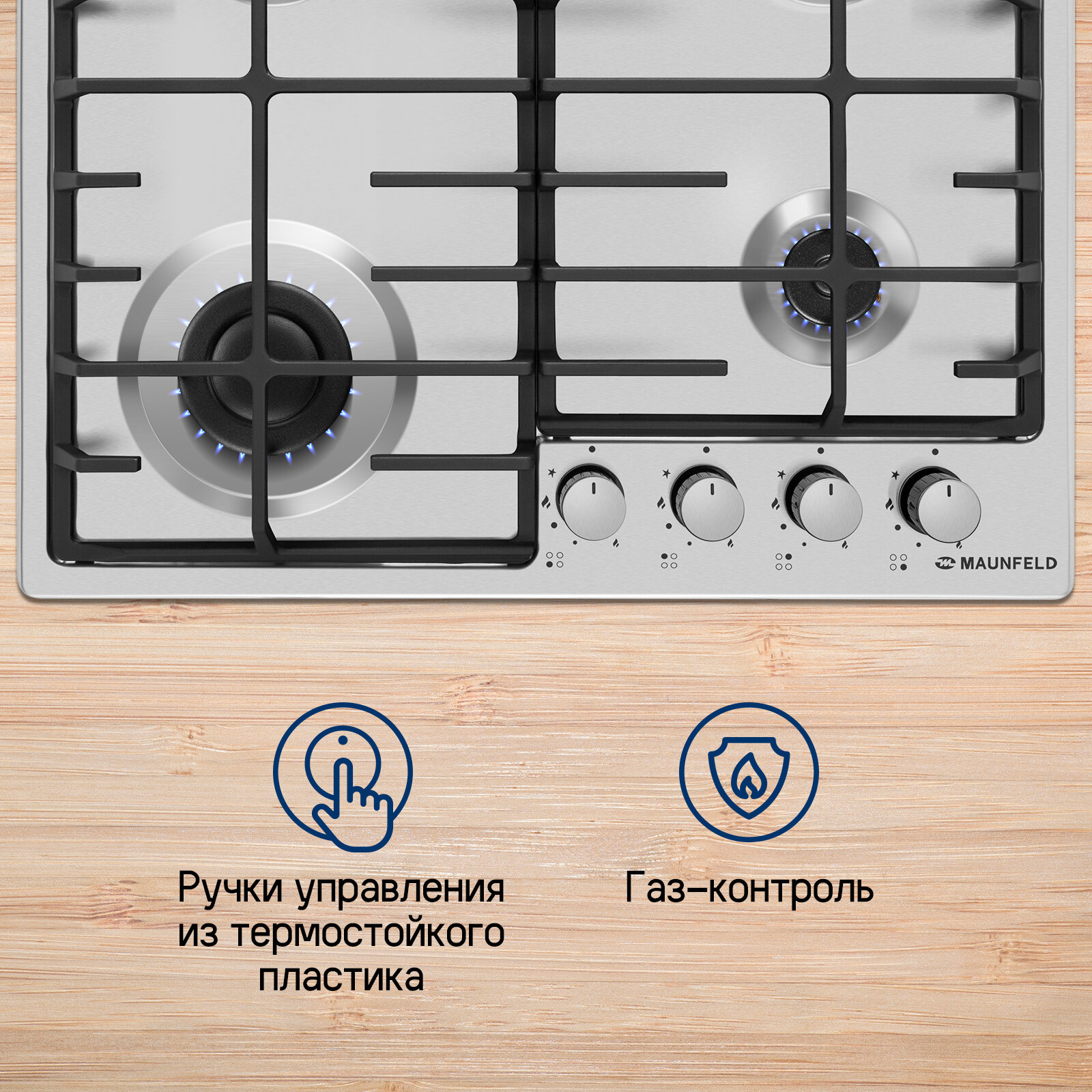 Газовая варочная панель MAUNFELD EGHS.64.6CS/G, независимая, нержавеющая сталь