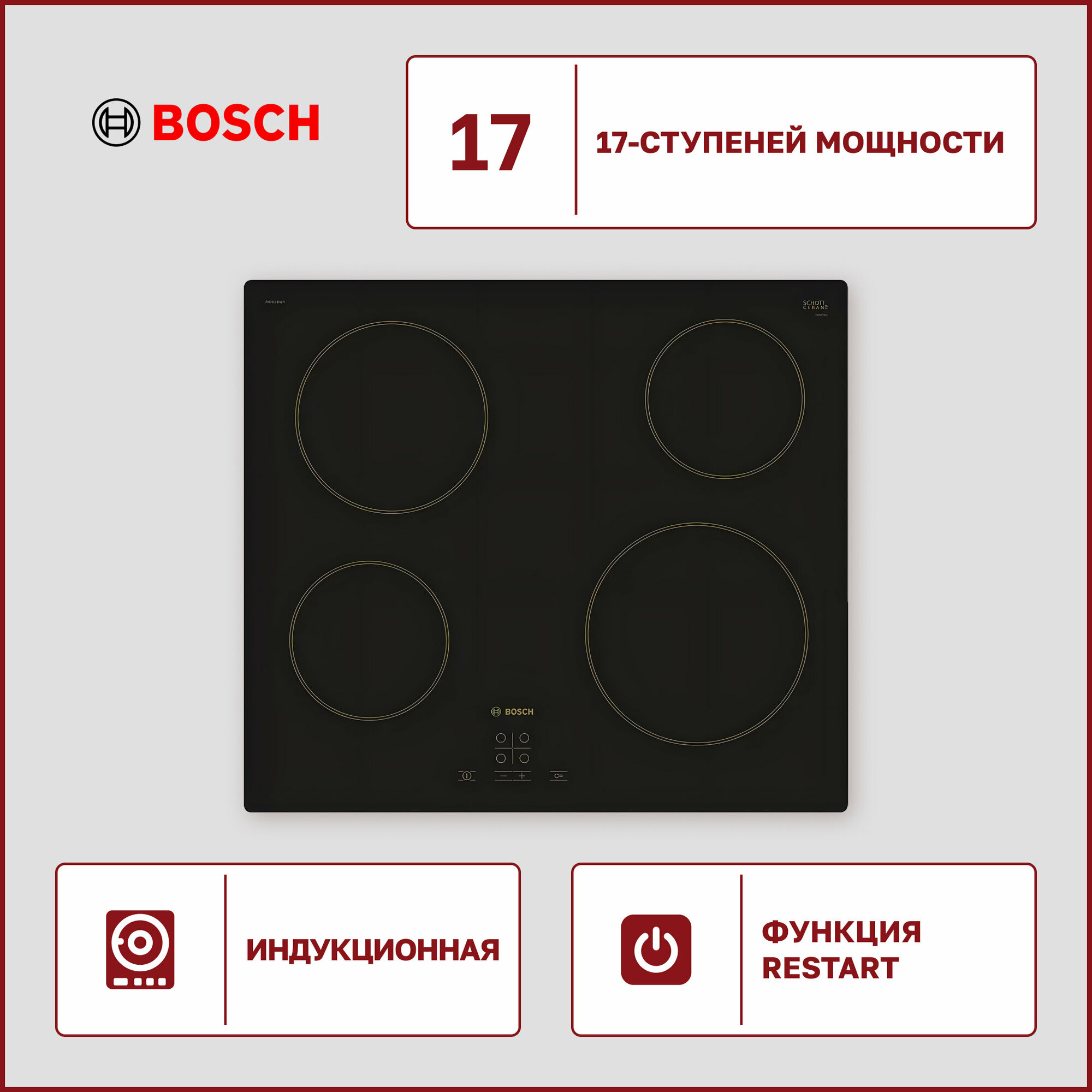 Электрическая варочная панель Bosch PKE611BA1R, черный интересное: