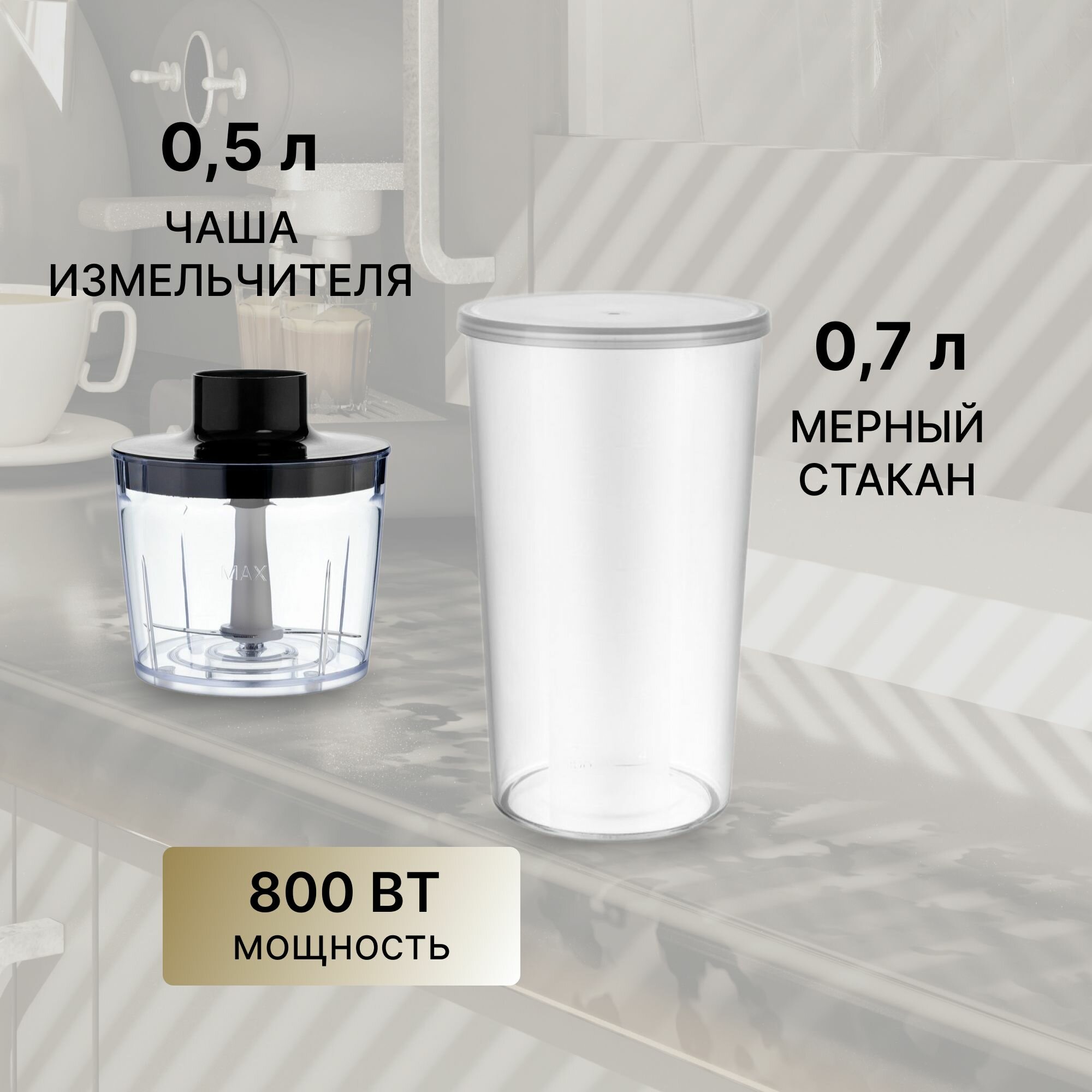 Блендер погружной BRAYER BR1244, 800 Вт, 2 режима, измельчитель, венчик, стакан, пюре, черный