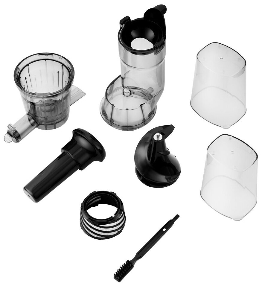 Отличная опция реверс, перед разборкой для легкости снятия достаточно дать задний ход шнеку. Заглушка на торце трубки сокослива это удобный функционал, закрыл и меняешь/сливаешь контарку с соком на новую не проливая на стол капли ? с трубки. Пока трудностей с чисткой сетки щёткой не было, но лучше его чистить сразу после выполненных работ. |