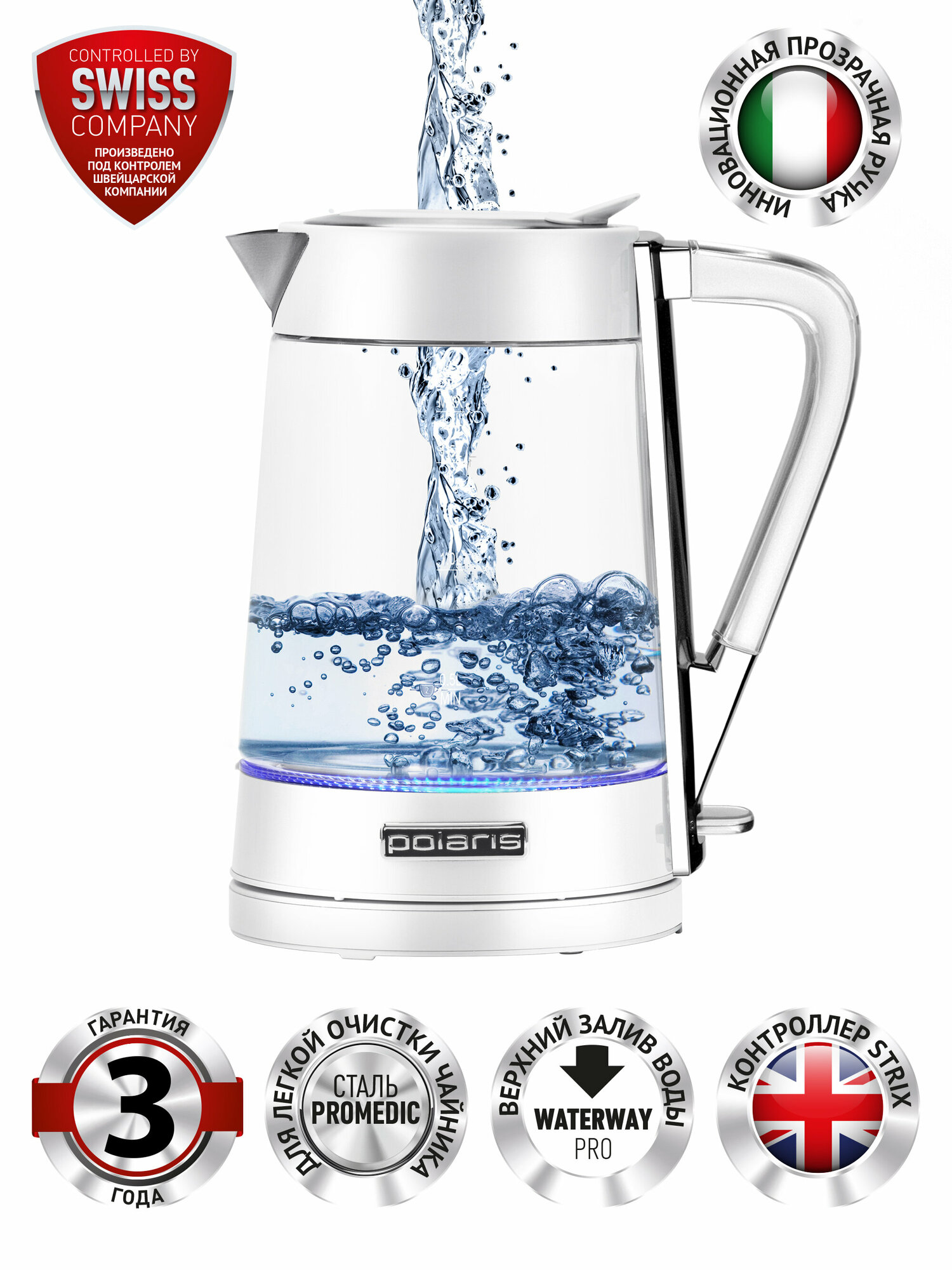 Электрический чайник Polaris PWK 1715CGL WATER WAY PRO , белый
