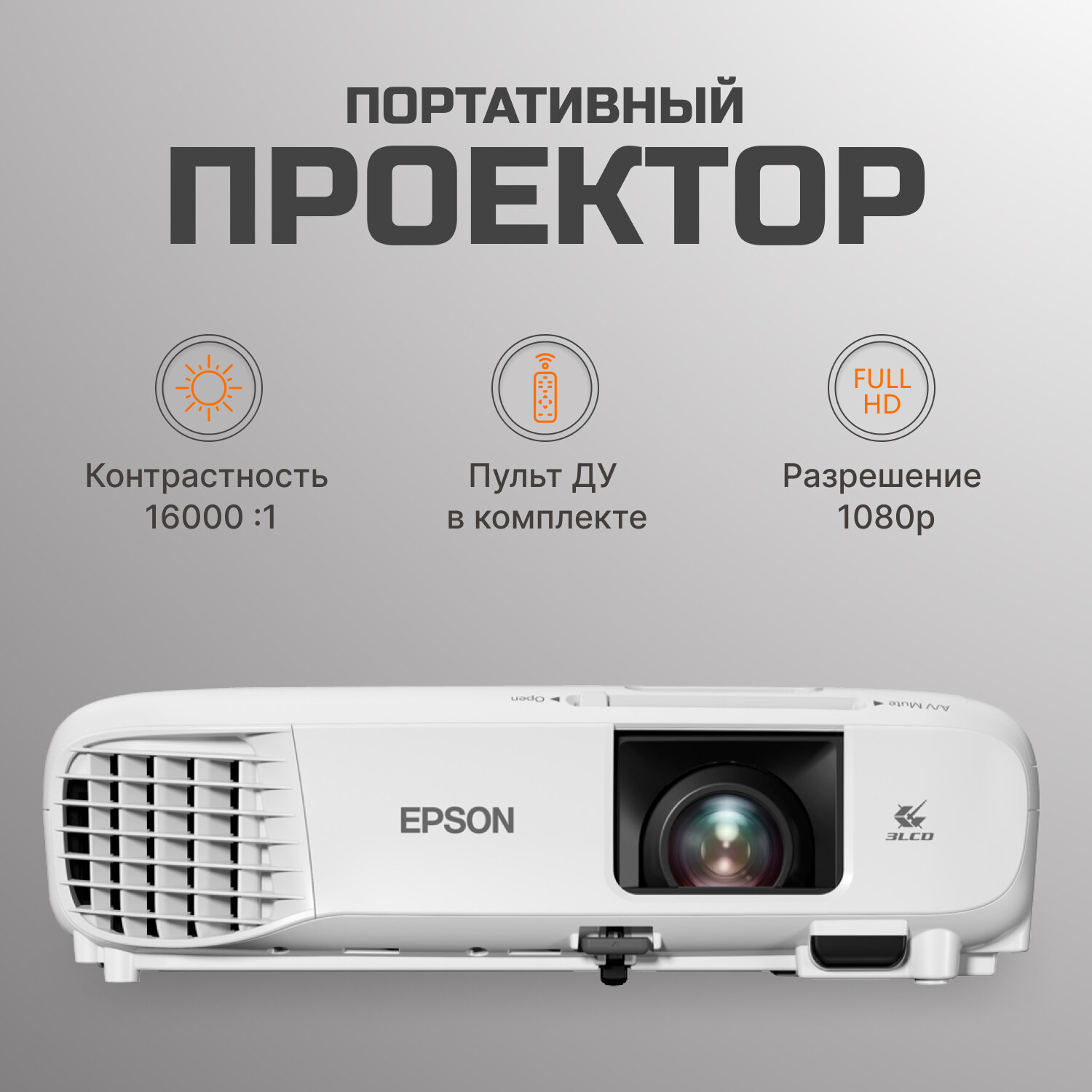 Проектор Epson EB-FH06 1920x1080 (Full HD), 16000:1, 3500 лм, LCD, 2.7 кг