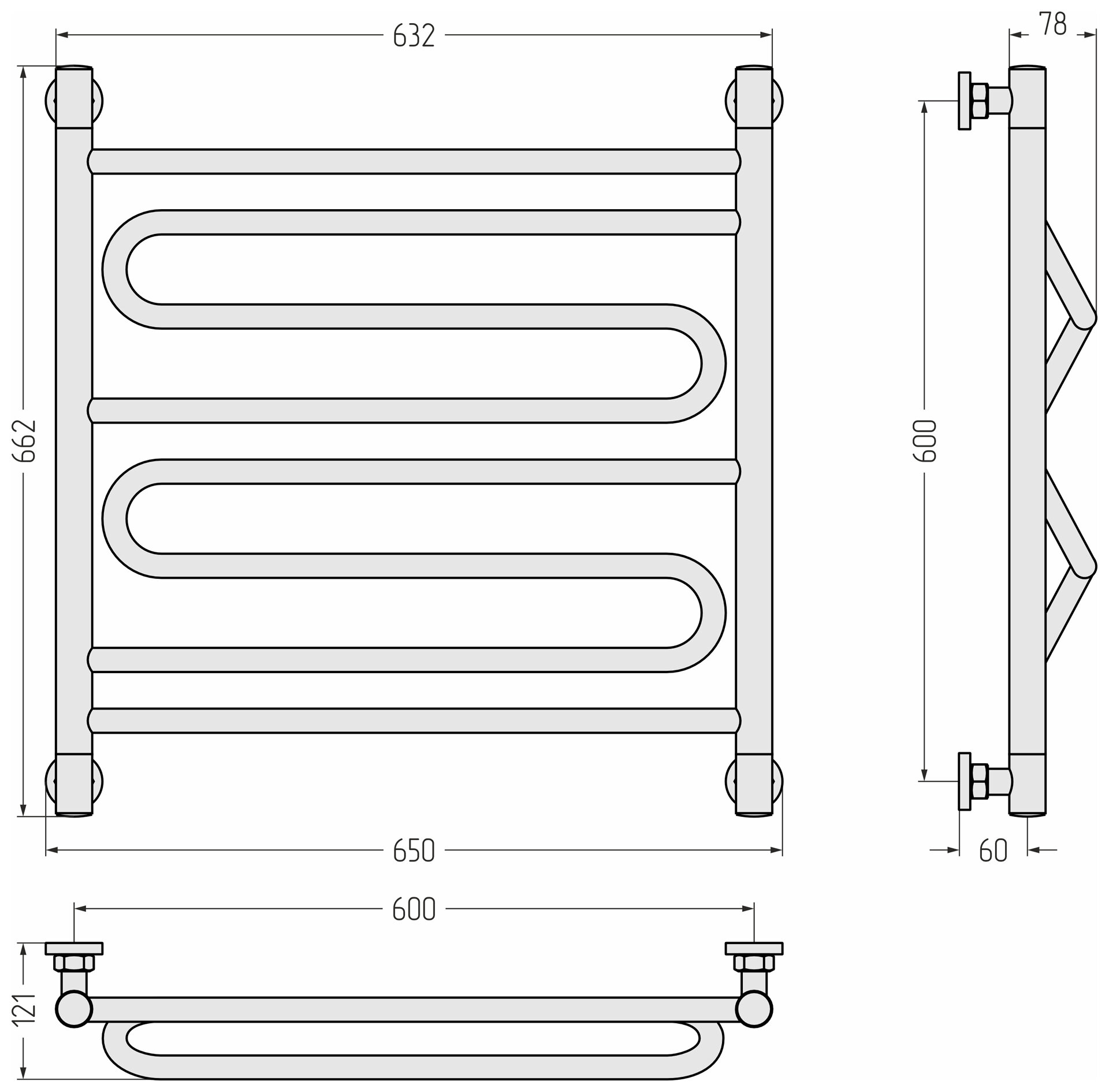 Полотенцесушитель водяной Элегия+ 600x600 Сунержа (00-0205-6060)