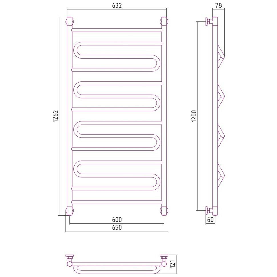 Полотенцесушитель водяной Сунержа Элегия+ 1200х600 Без покрытия 00-0205-1260