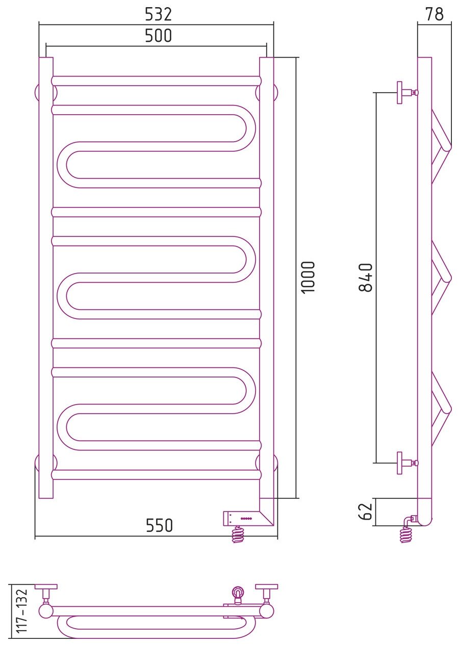 Полотенцесушитель Электрический Тругор Пэк сп 5 П 60х50 черный ВГП