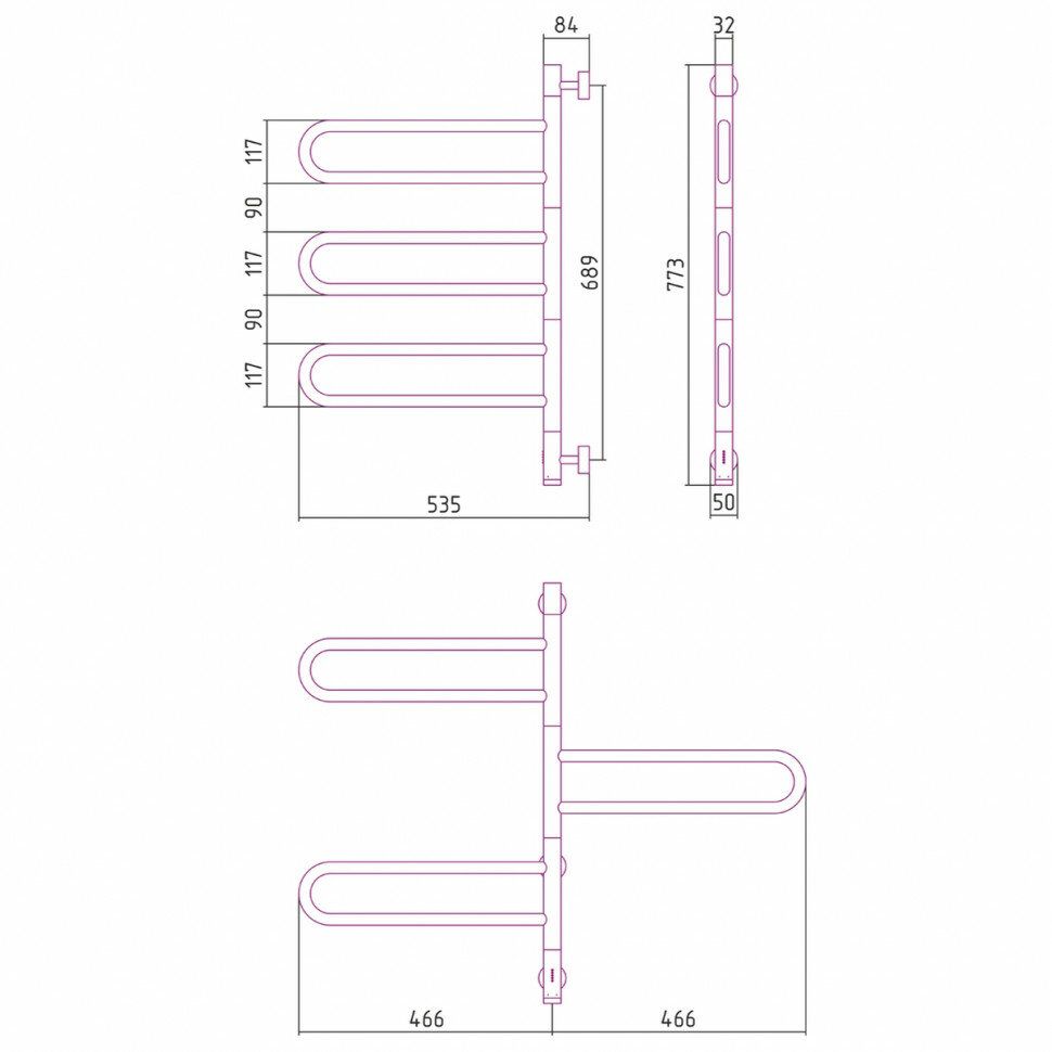 Полотенцесушитель Сунержа Парео 4.0-3C 773х535 00-0823-0773 Без покрытия