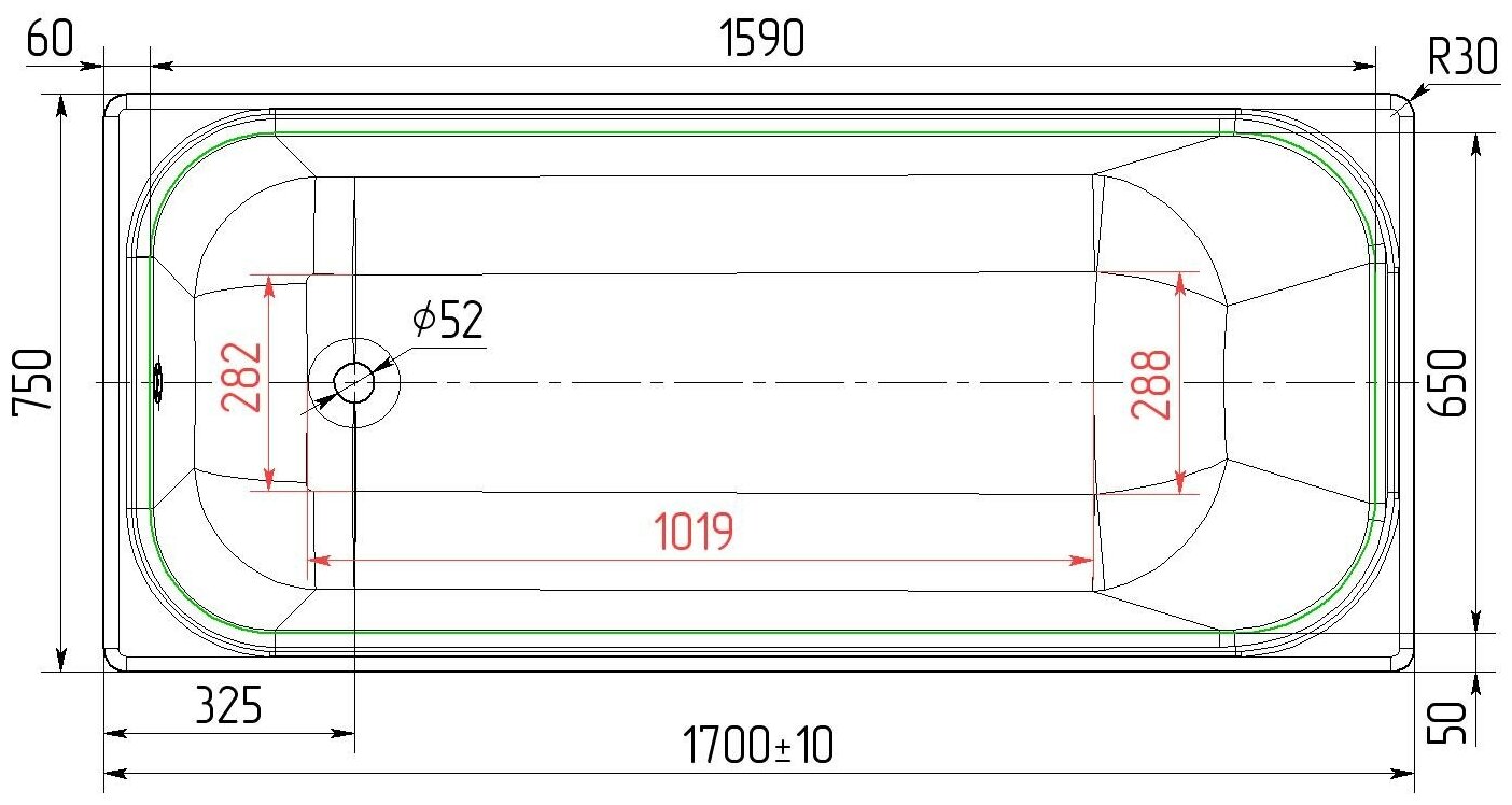| Минусы: | Борта ванны (по длине) дугой. Середина выступает на 1,5 см относительно краев, что усложняет облицовку плиткой. |