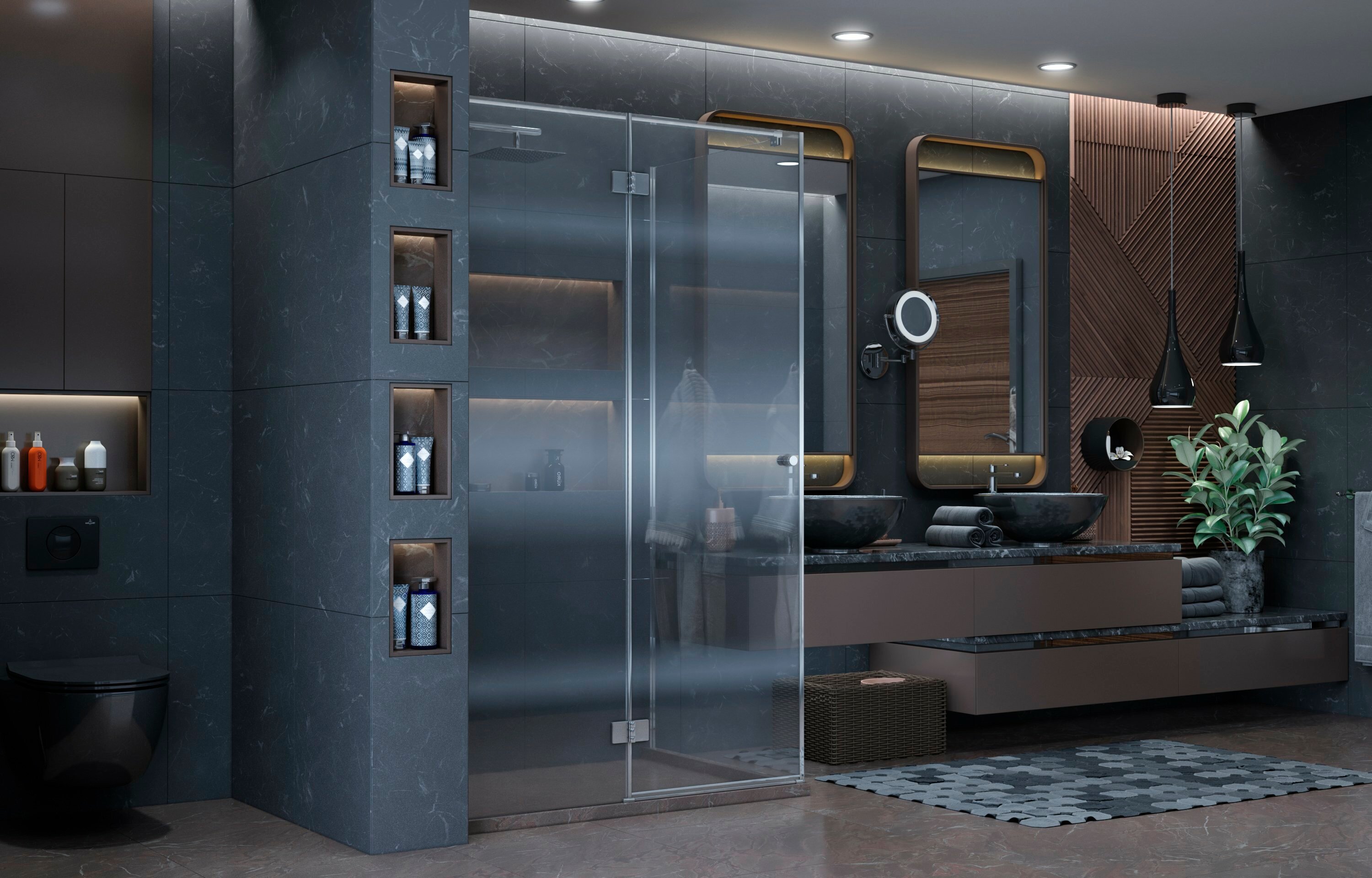 Душевой уголок Vincea city vsr-5ct9011clb, 1100 900, черный, стекло прозрачное vsr-5ct9011clb