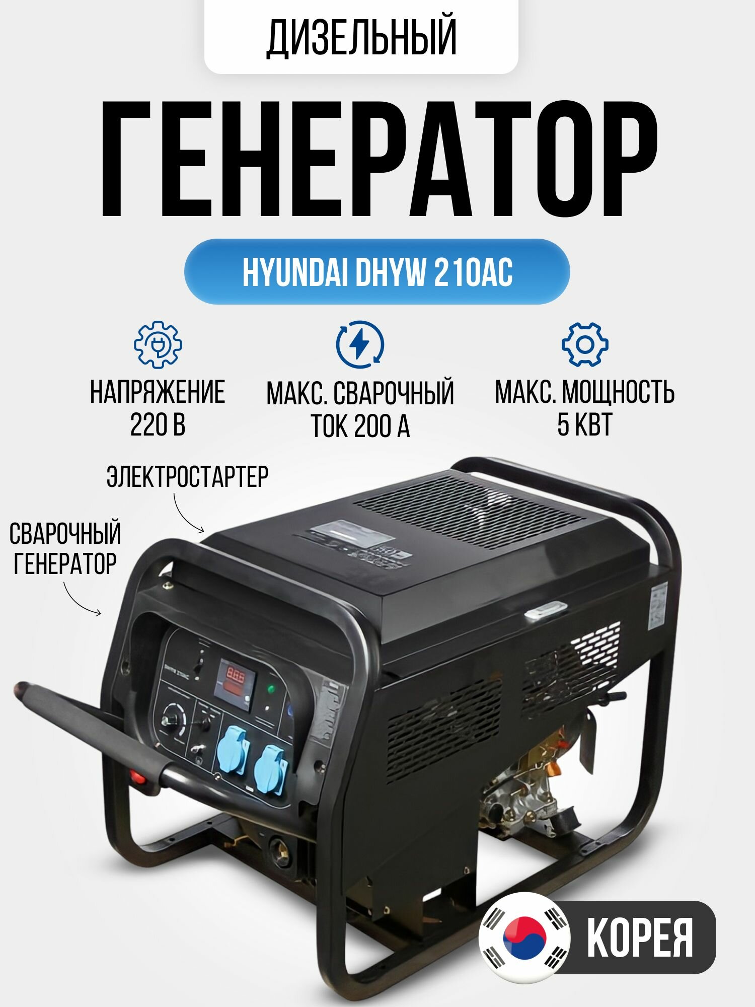 Генератор дизельный сварочный Hyundai DHYW 210AC интересное:
