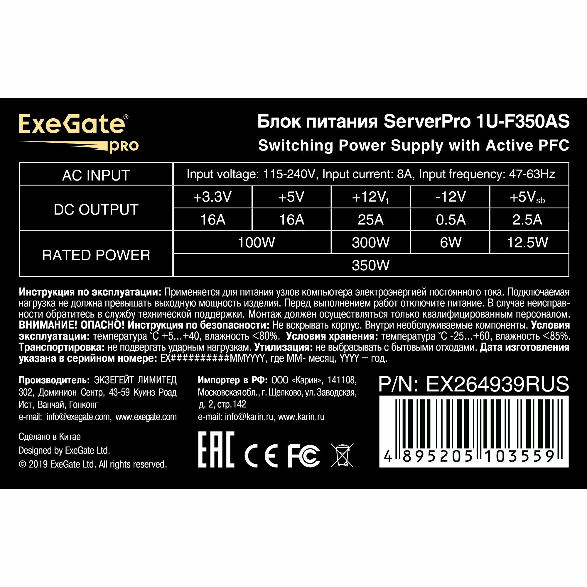 Блок питания ExeGate ServerPRO-1U-F350AS 350W (EX264939RUS)