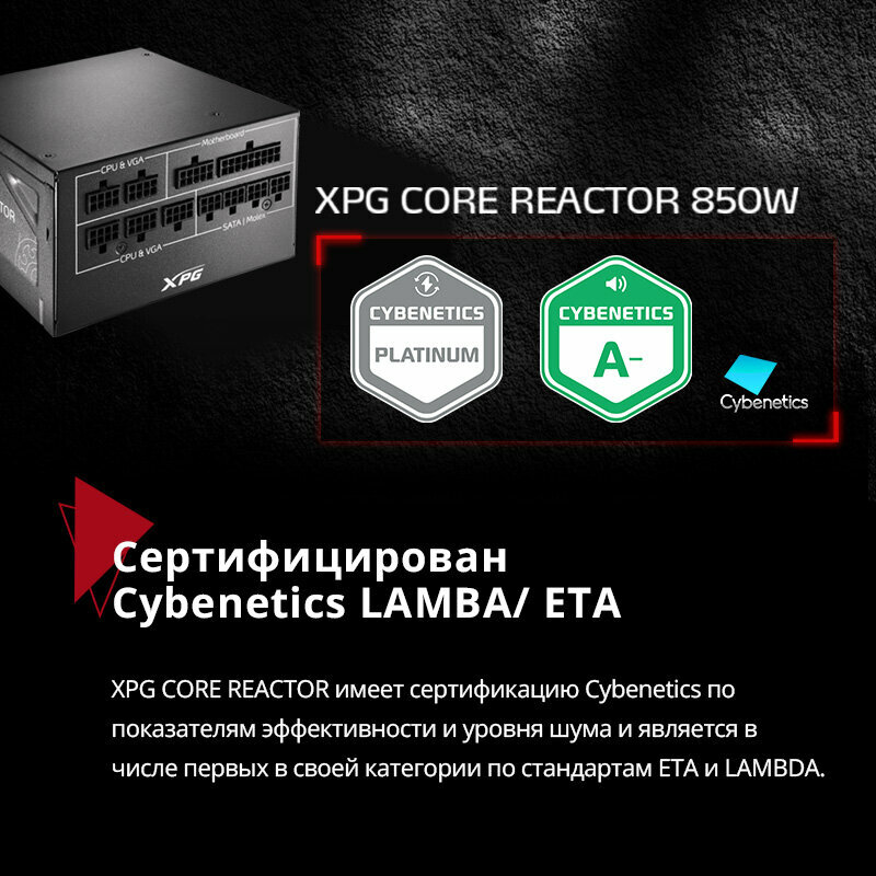 Блок питания ADATA XPG CORE REACTOR 750 750 Вт, 80+ Gold, EPS12V, APFC, 20 + 4 pin, 4+4 pin x2 CPU, 12 SATA, 6+2 pin x4 PCI-E