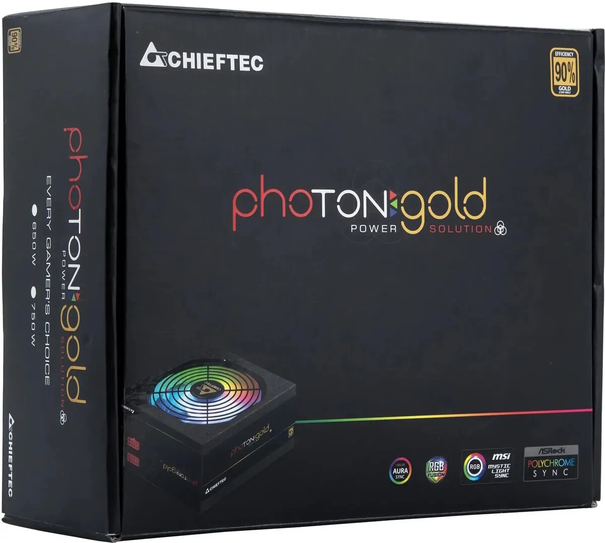 Chieftec Photon Gold Gdp-650c-rgb (atx 2.3, 650W, )90 efficiency, Active Pfc, Argb Rainbow 140mm fan