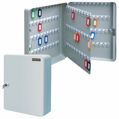 СохранитьШкафчик (Ключница) на 140 ключей BRAUBERG, 370?280?80 мм, с замком, +140 брелоков, серый интересное: