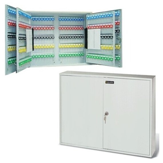Шкафчик на 300 ключей BRAUBERG 730х550х140 мм, с замком, +300 брелоков, серый, 290341