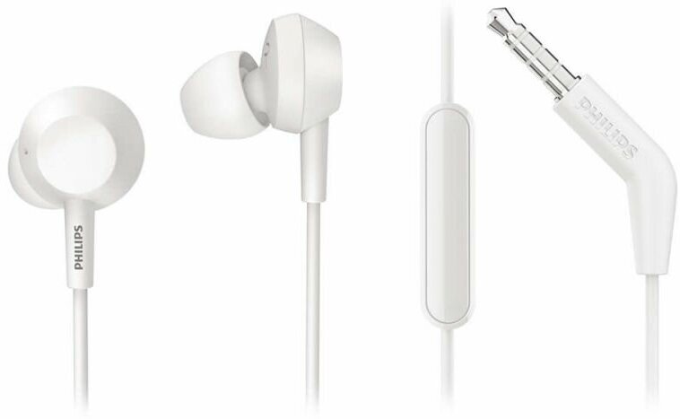 Наушники вкладыши с микрофоном Philips TAE1105WT/00 , мобильная гарнитура, белые