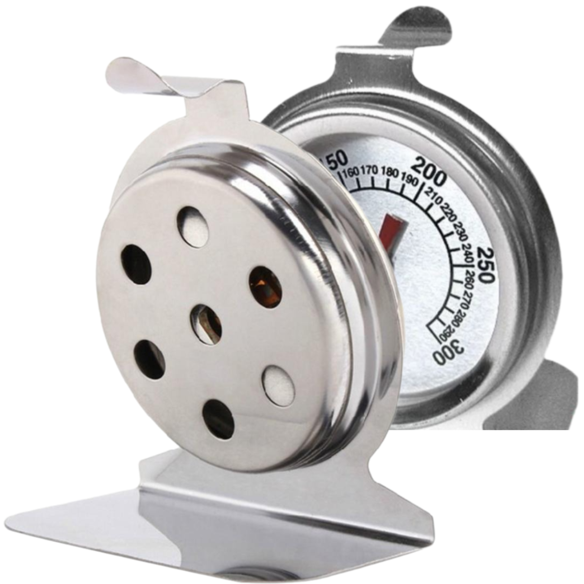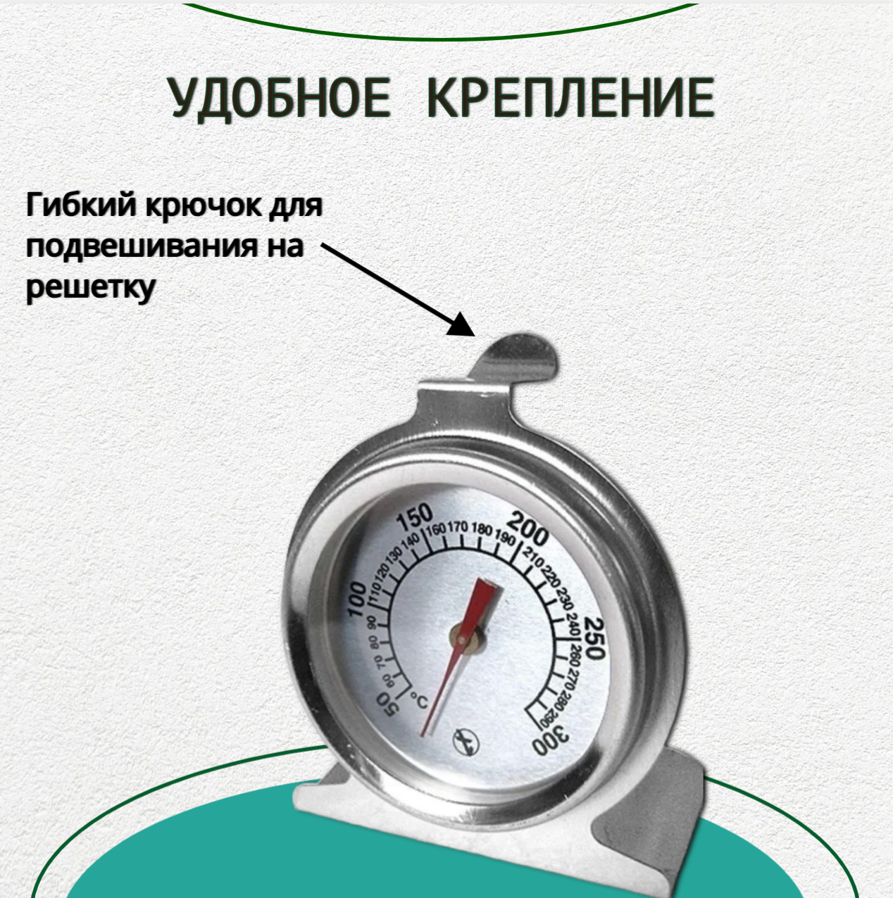| Плюсы: | Можно поставить на решетку или повесить. на крючок.Удобно смотреть температуру в духовке. |