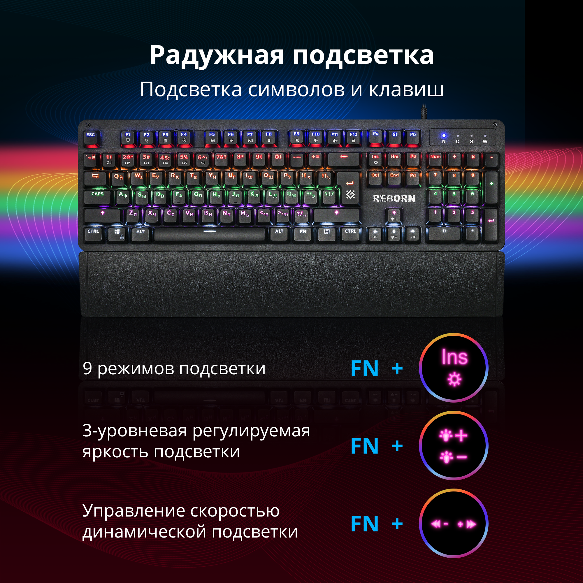 Клавиатура игровая Defender Reborn GK-165DL RU механическая 104 кл, литые буквы, кабель 1.5 м