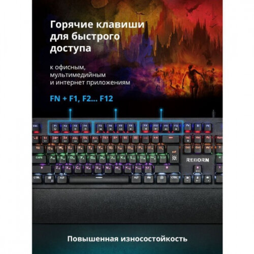 Клавиатура игровая Defender Reborn GK-165DL RU механическая 104 кл, литые буквы, кабель 1.5 м