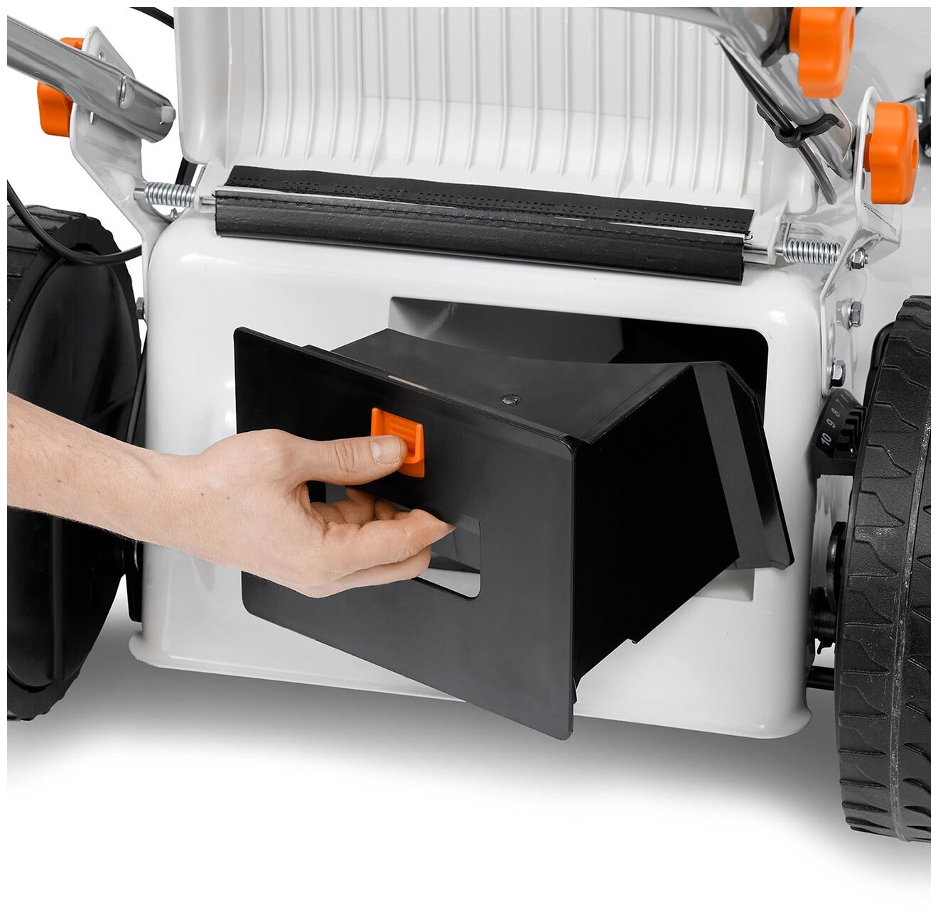 | Плюсы: | устойчивая работа двигателя, вес, наличие привода на колеса, удобная ручка, легкая очистка мешка, наличие самого мешка (чисто после покоса), возможность работы без мешка (боковой выброс) |