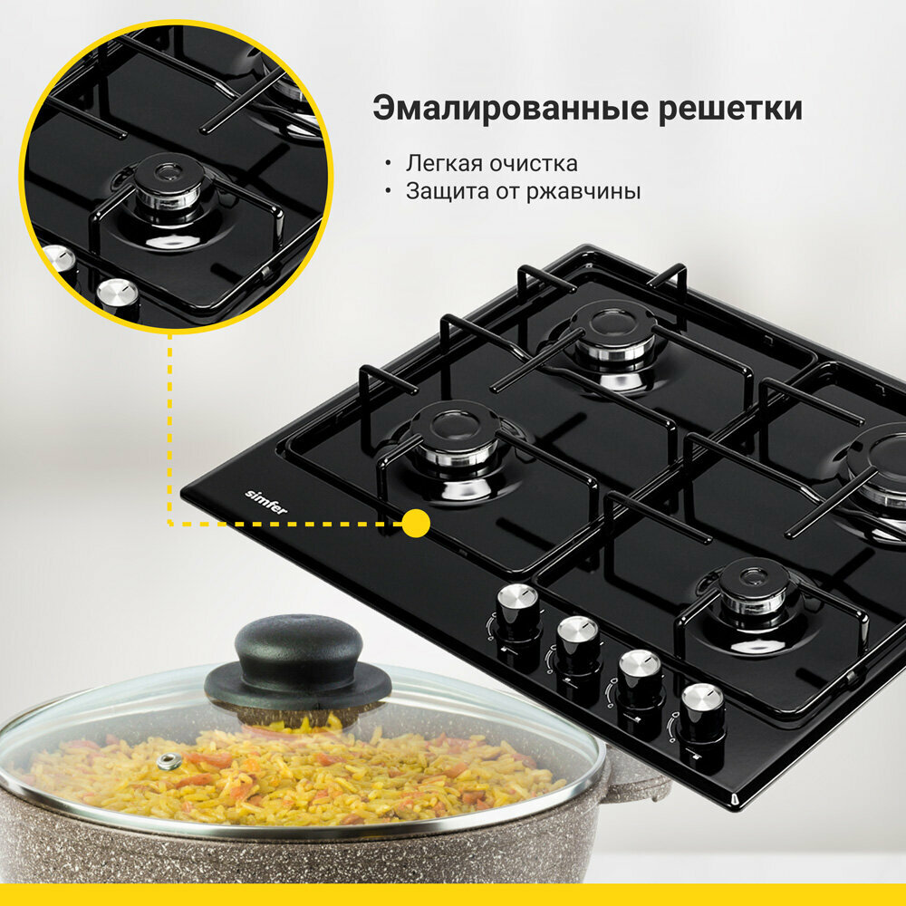 Газовая варочная панель Simfer H60V40B416, независимая, черный