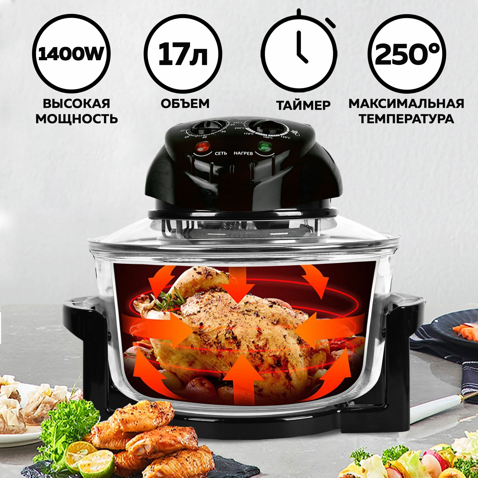 GFGRIL аэрогриль GFA-GL17M 12л + 5л., аэрогриль с функциями: самоочистка, размораживание, шашлычница, расширительное кольцо, таймер