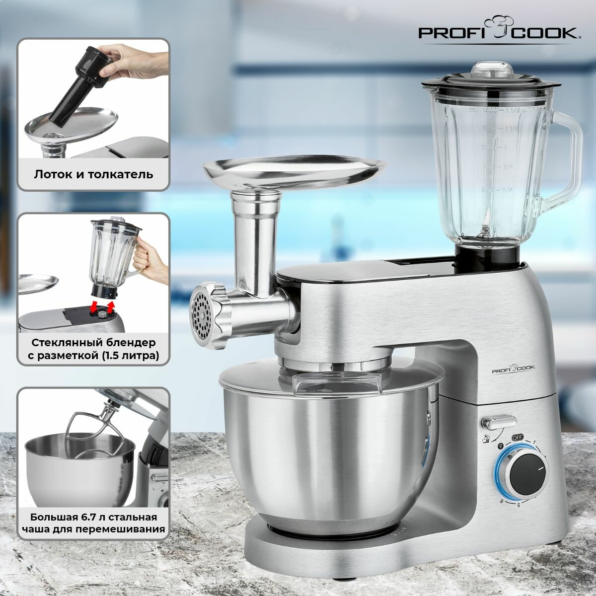 Кухонный комбайн ProfiCook PC-KM 1189, 1500 Вт, серебристый