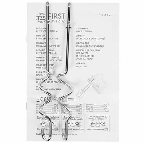 First FA-5263-2 White Миксер,300 Вт.5 скоростей. 2 пары насадок.Режим турбо.White