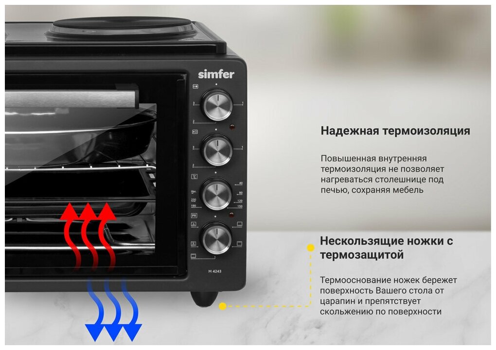 Мини-печь Simfer M4243 серия Albeni Plus, 5 режимов работы, с конфорками