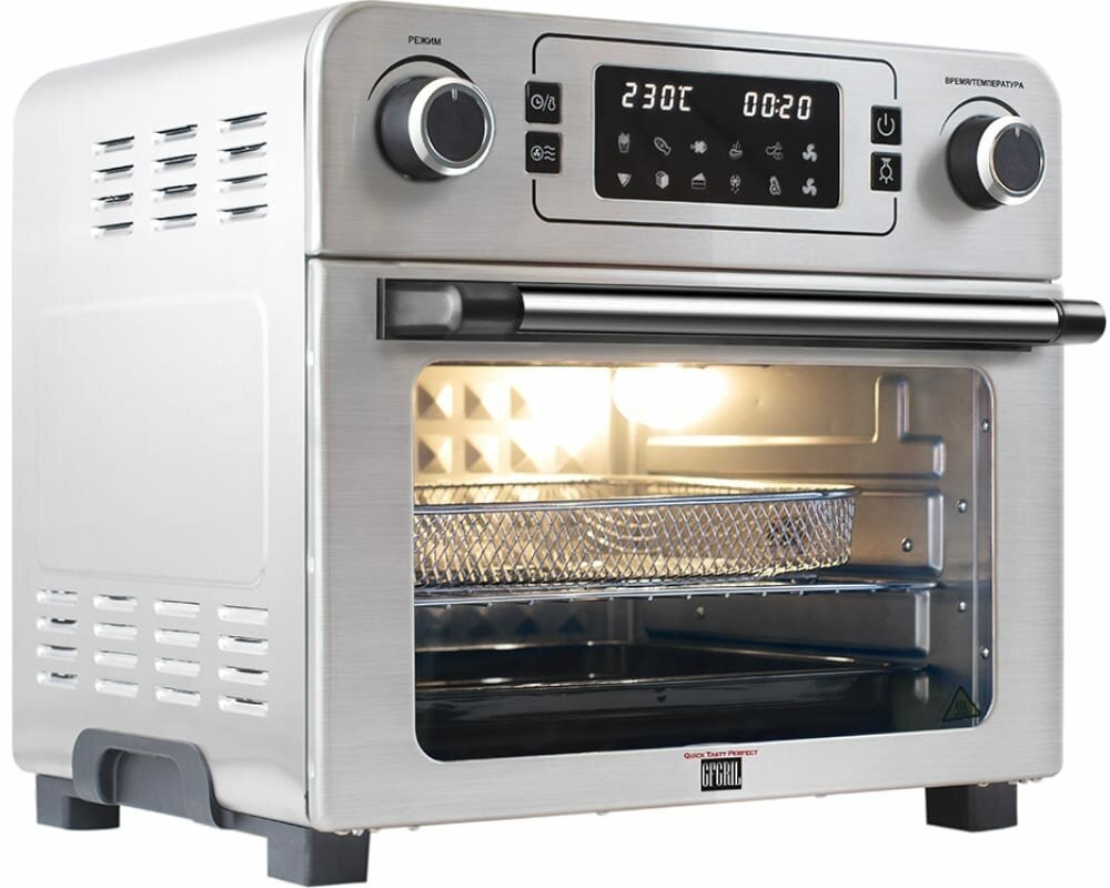 Отличная печка. Компактная с аэрогрилем, цифровым выставлением температуры и времени, подсветкой. Очень удобно: можно переносить и перевозить в любое место где есть электричество