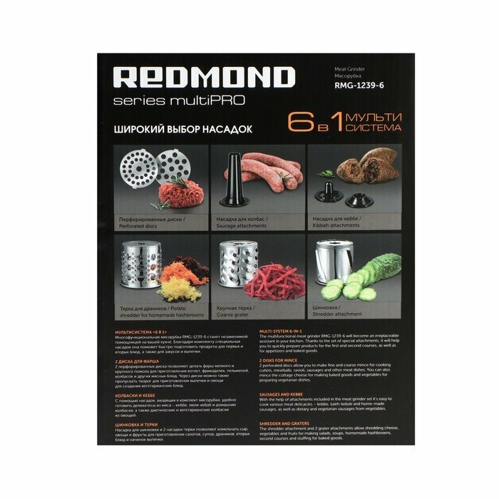 Мясорубка REDMOND RMG-1239-6, черный интересное: