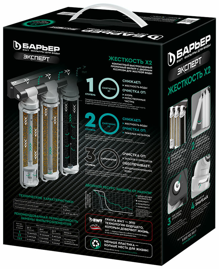 БАРЬЕР эксперт Жесткость х2, фильтр под мойку для очистки воды, двойная защита от накипи, трехступенчатый, быстросъемный