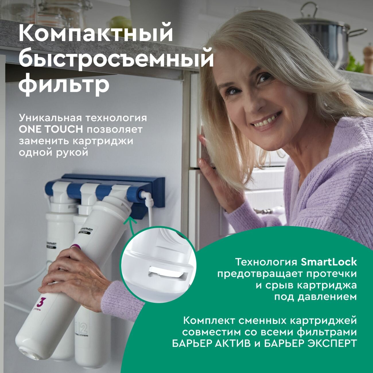 Фильтр под мойку для очистки воды трехступенчатый, быстросъемный барьер эксперт Жесткость х2, двойная защита от накипи