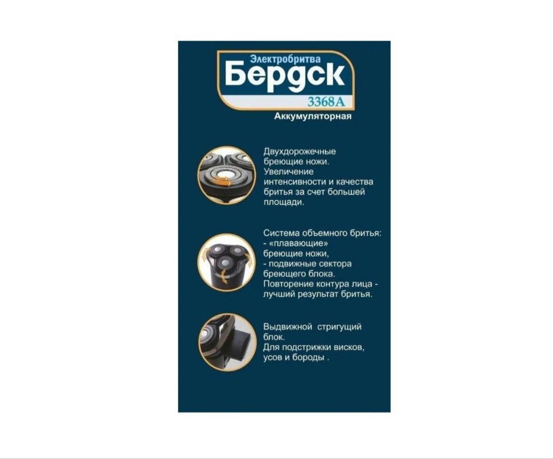 Бердск 3368А электробритва аккумуляторная, 3-х ножевая, 3-х мерное бритье