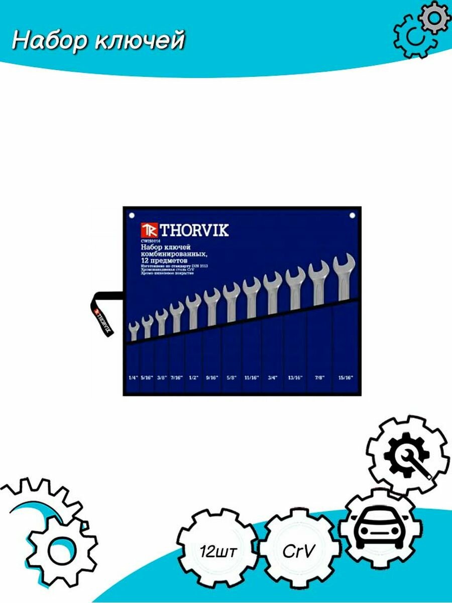 Набор ключей комбинированных дюймовых 1/4"--15/16", CWIS0012 Thorvik, 52916