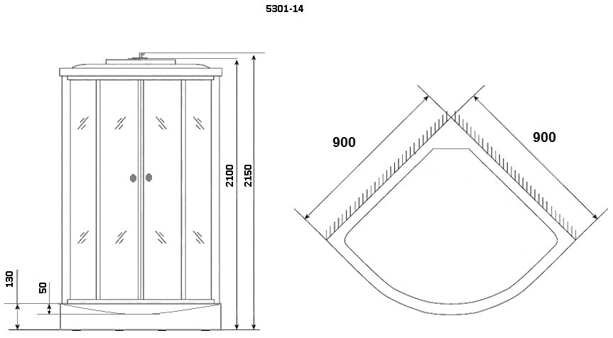 Кабина душевая NG-5301-14 (900х900х2150) низ под(13см), стекло матовое